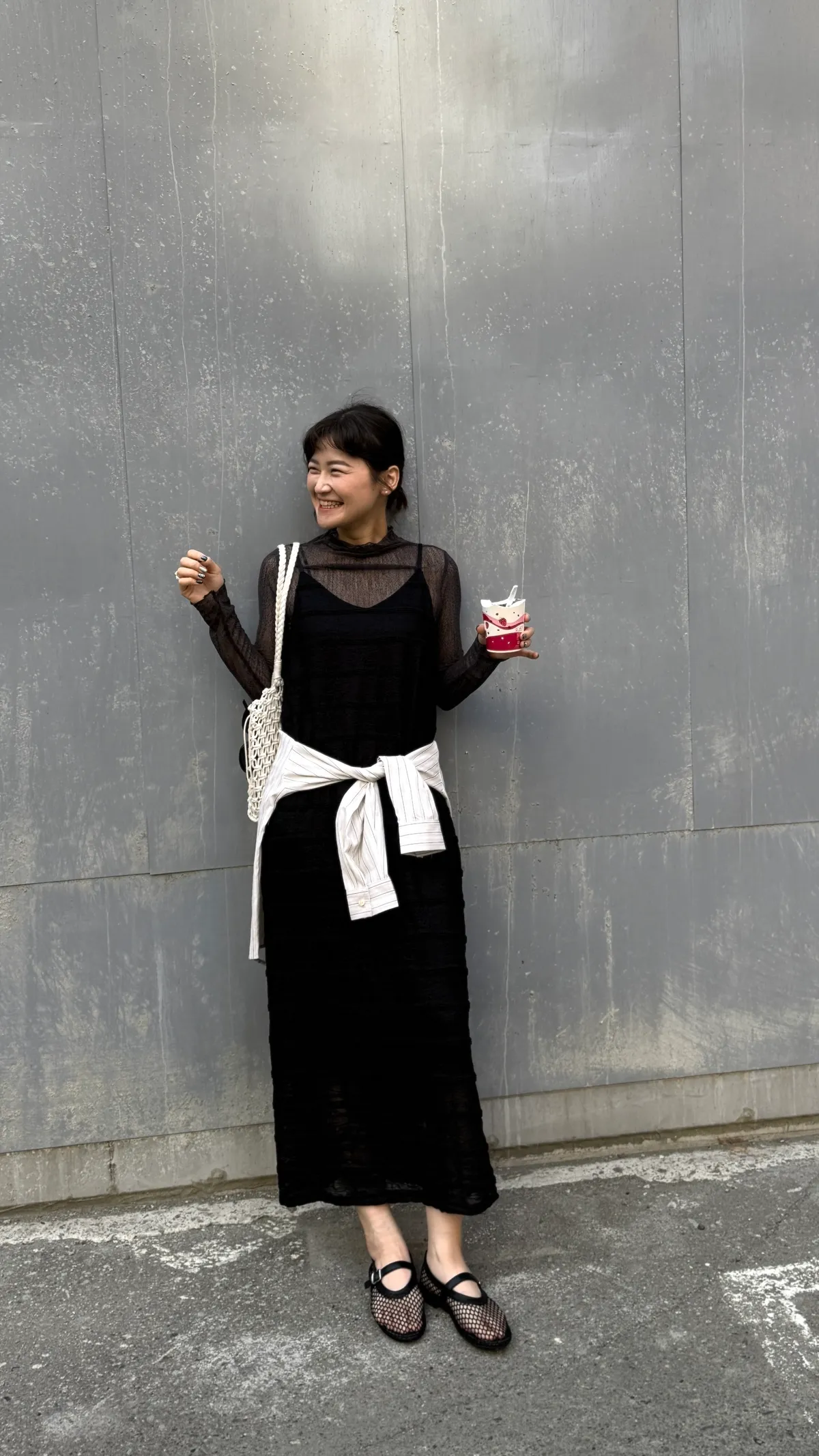 壓紋細肩長洋
