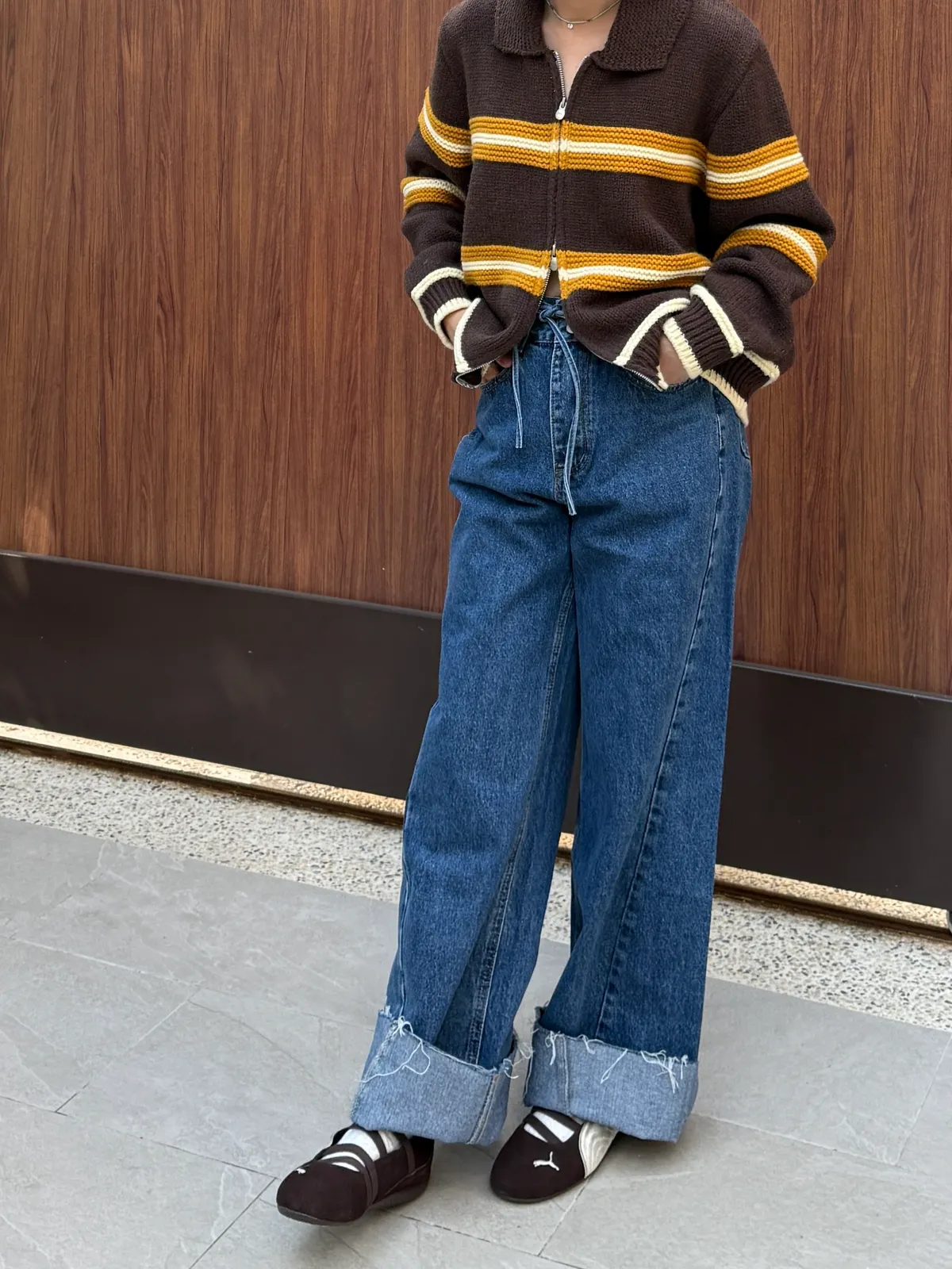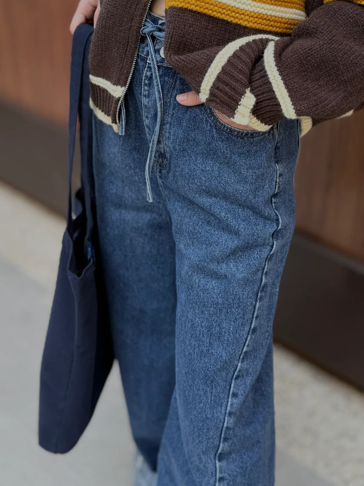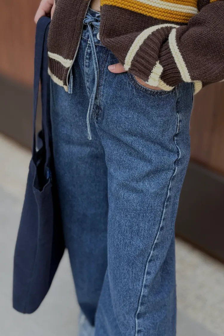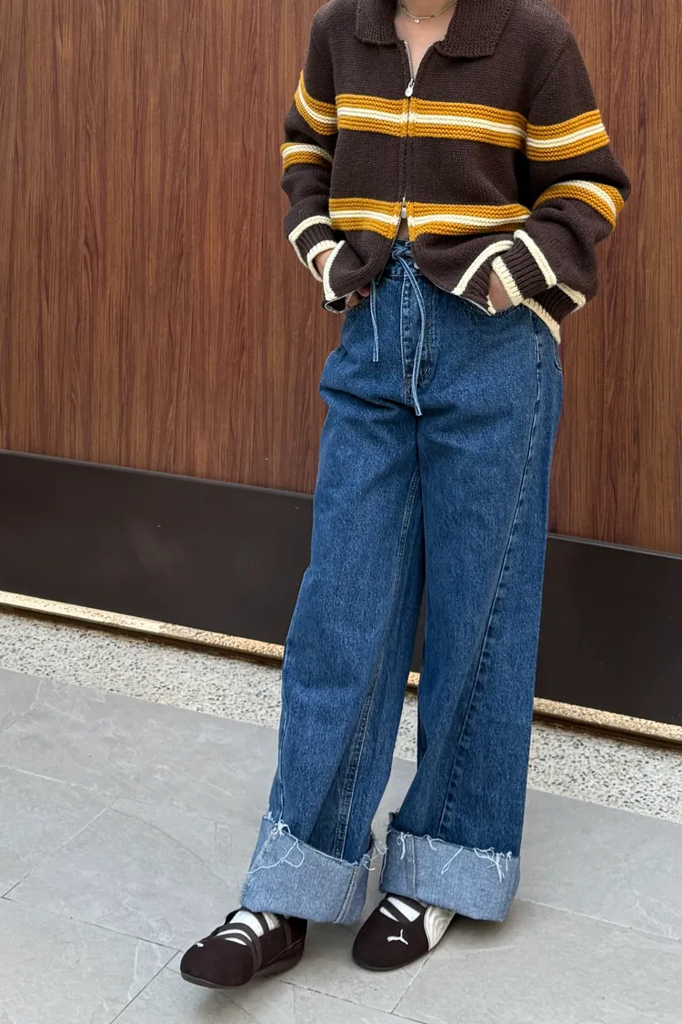 抽繩壓線牛仔褲