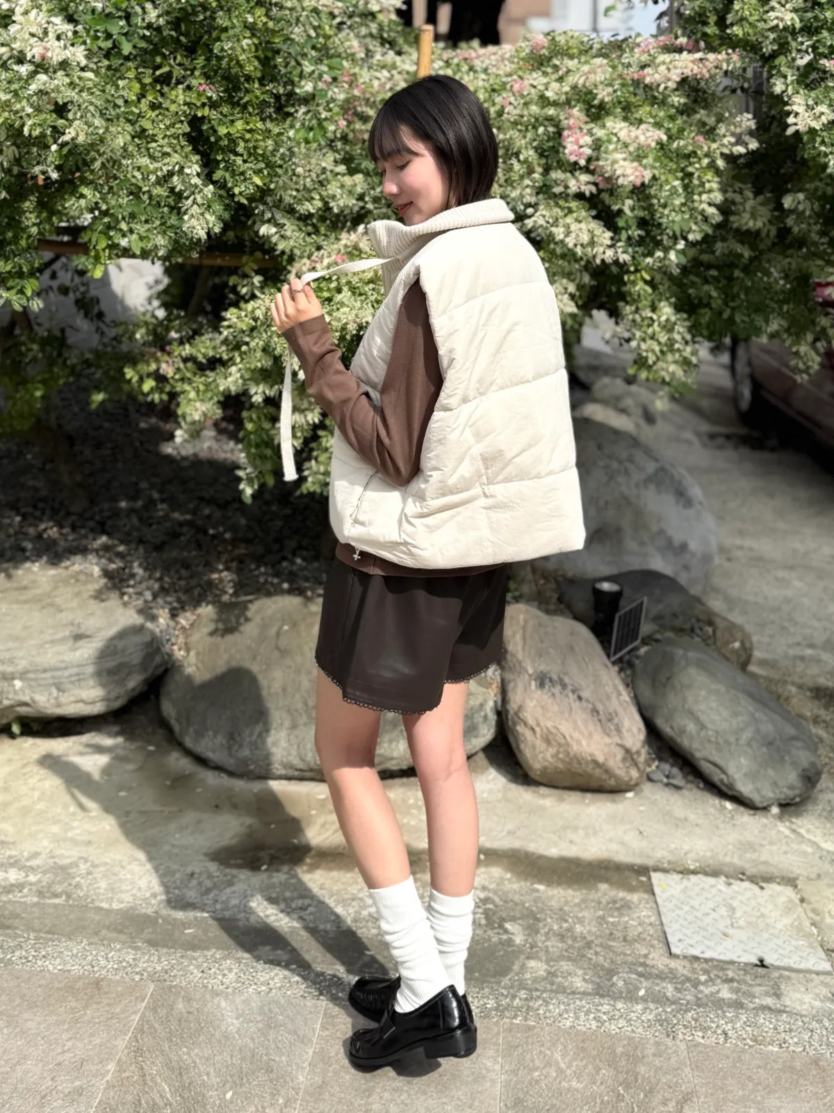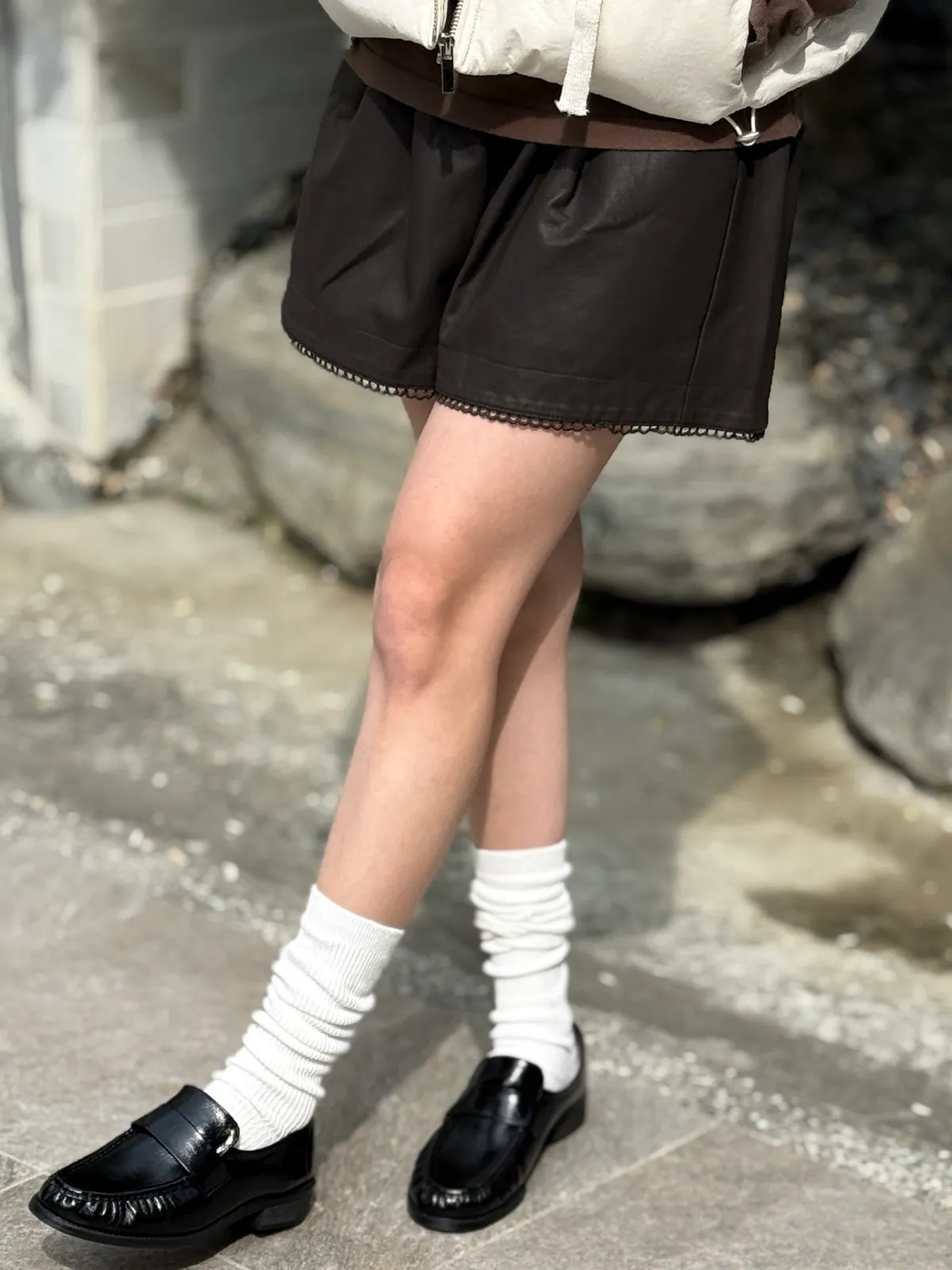 鬆緊滾邊皮短褲