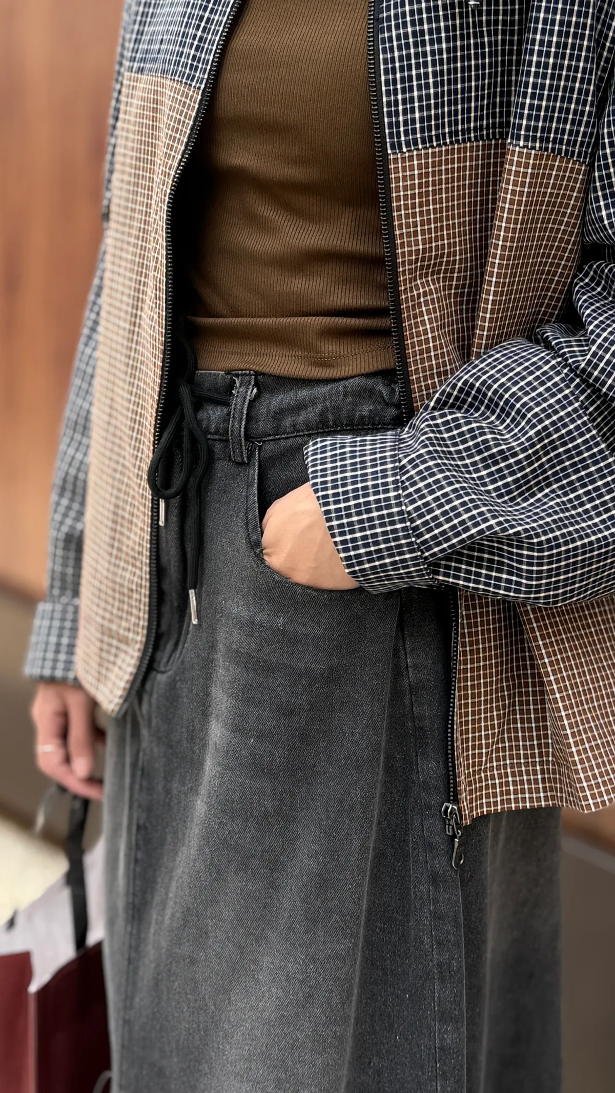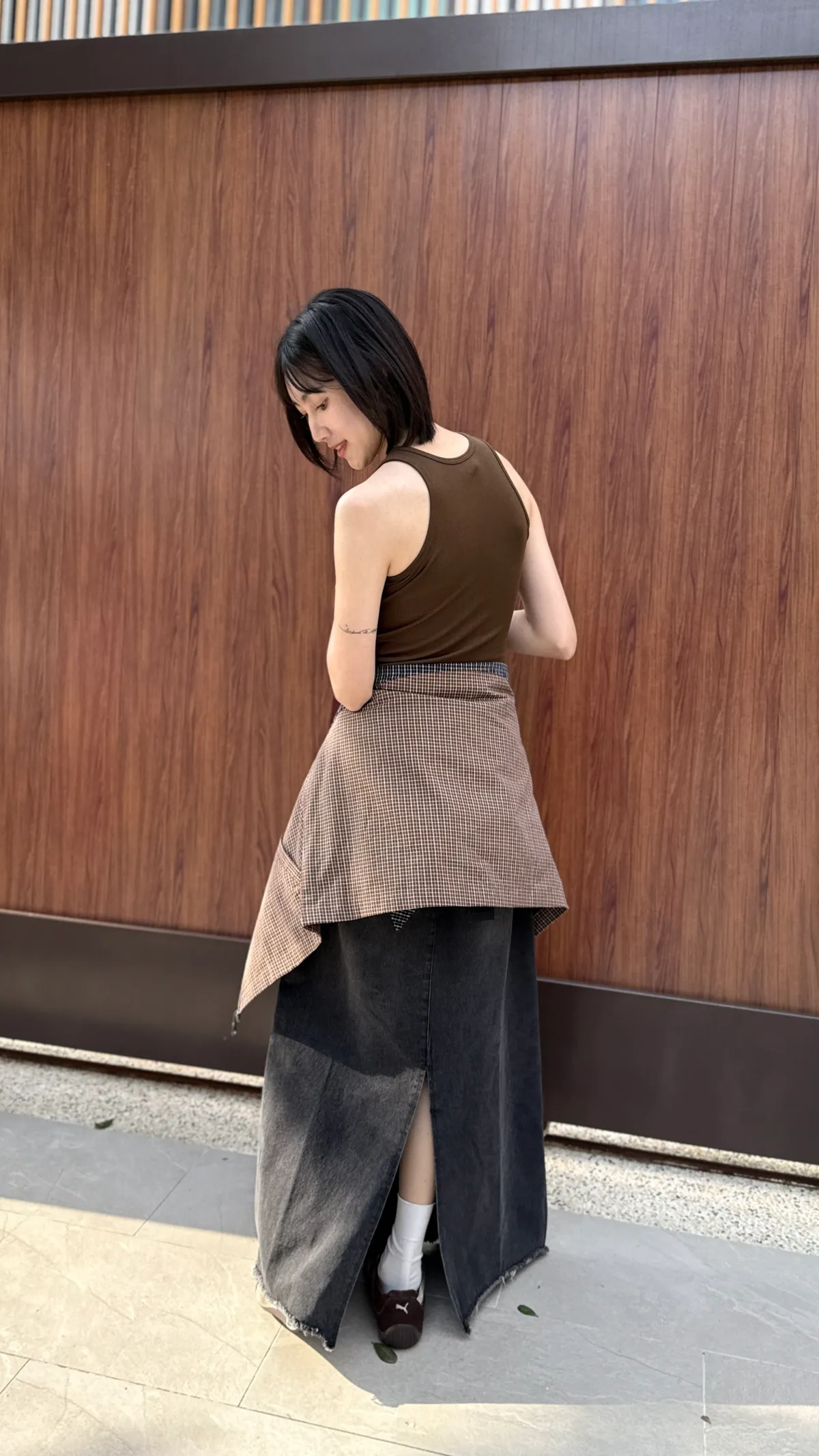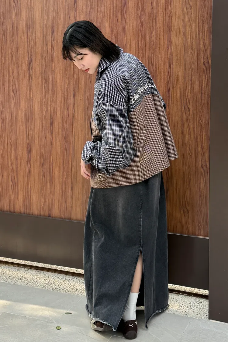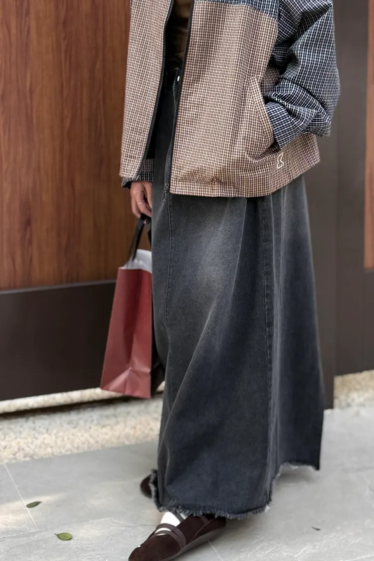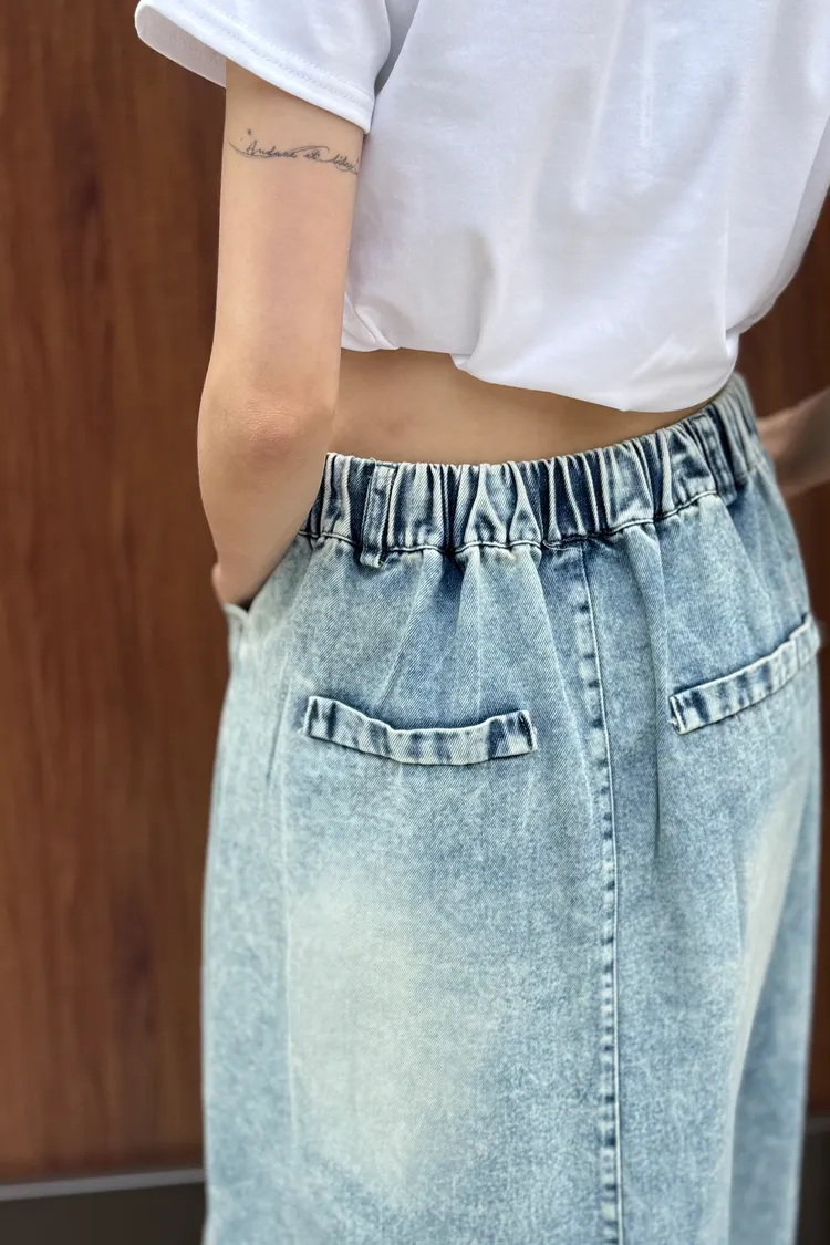 抽繩後鬆緊牛仔裙