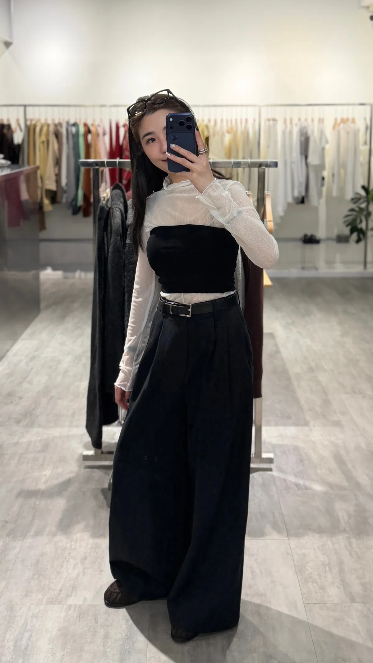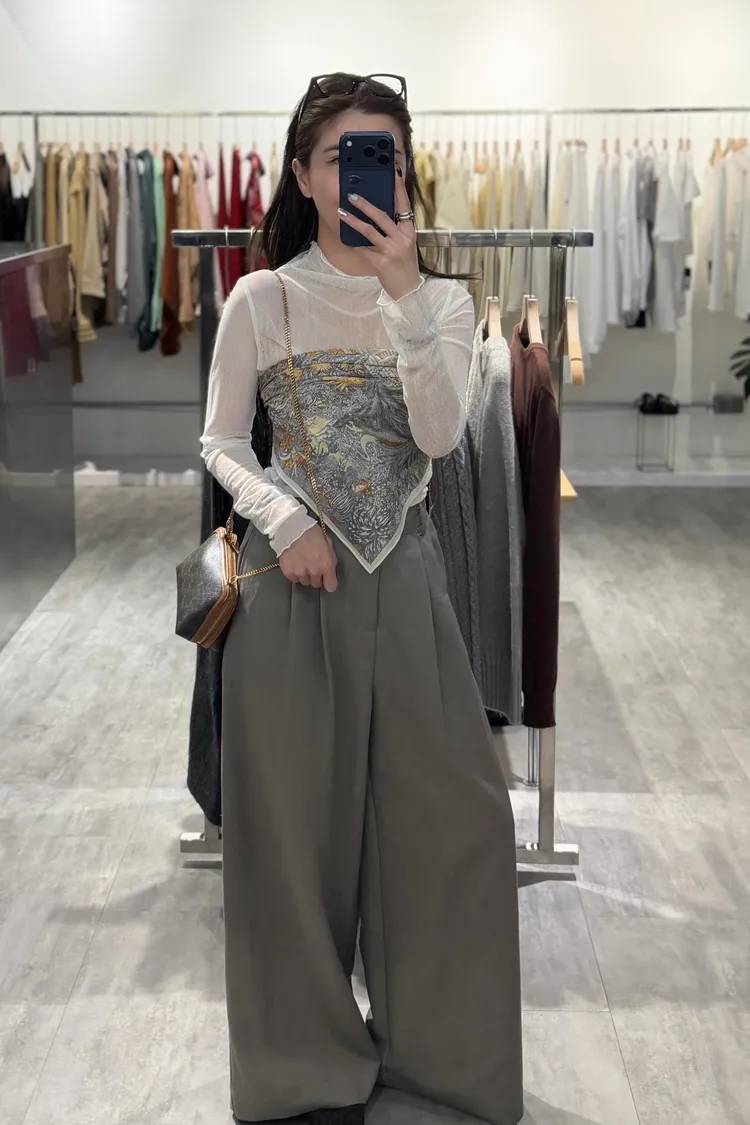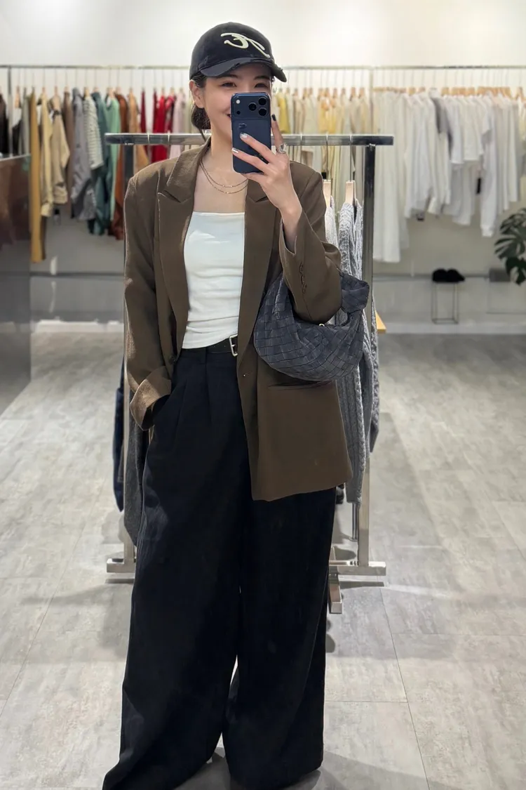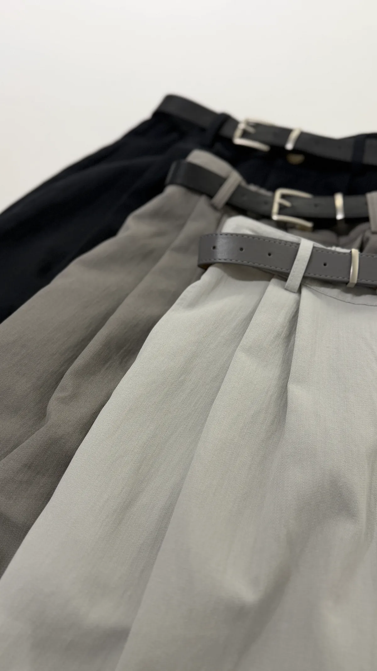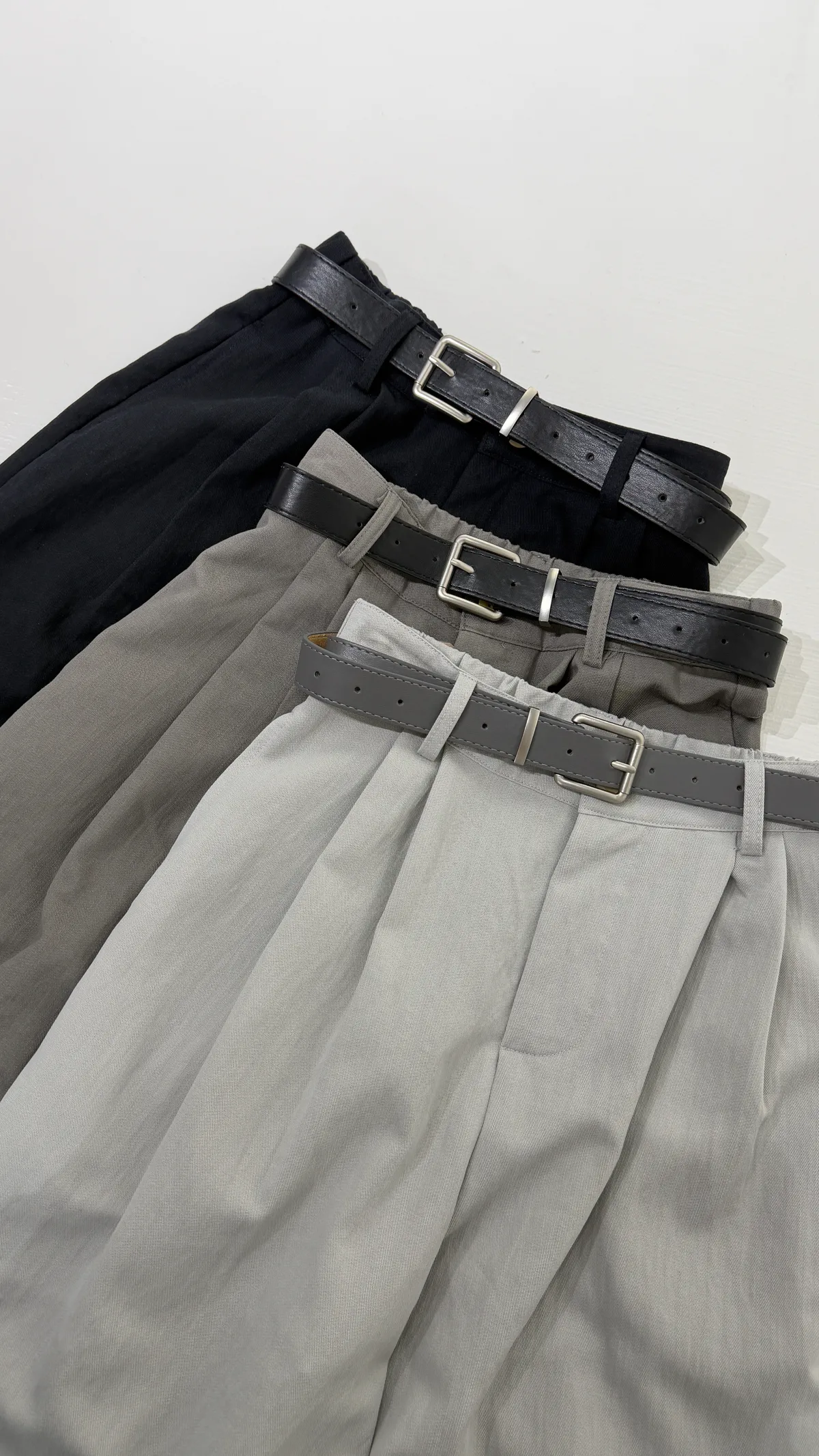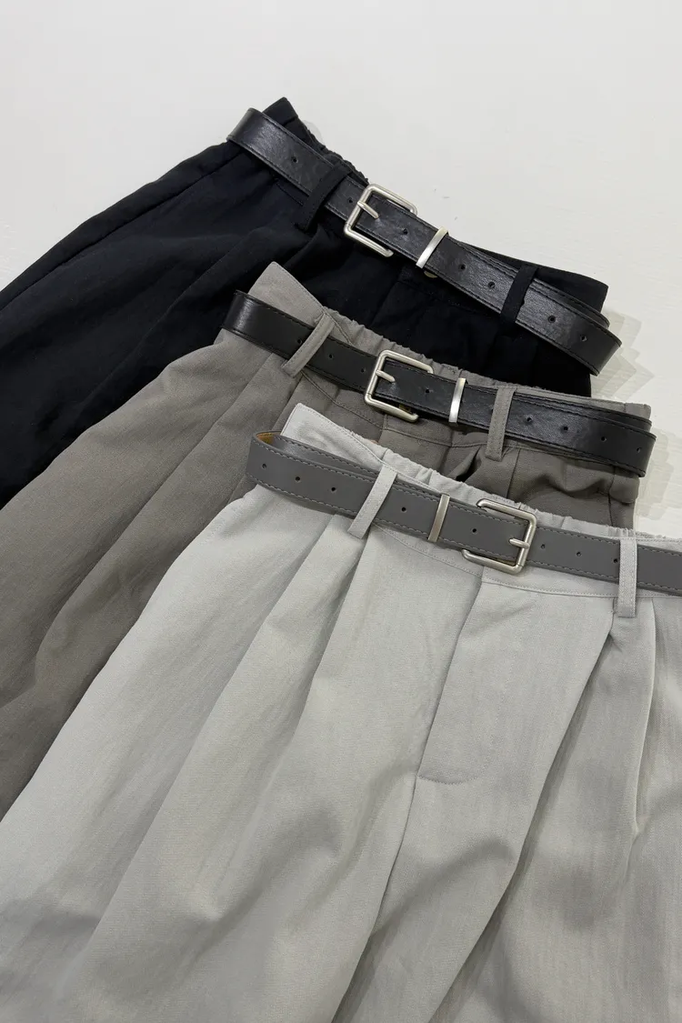 皮帶壓褶寬褲