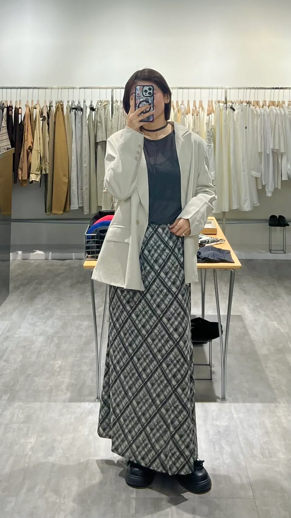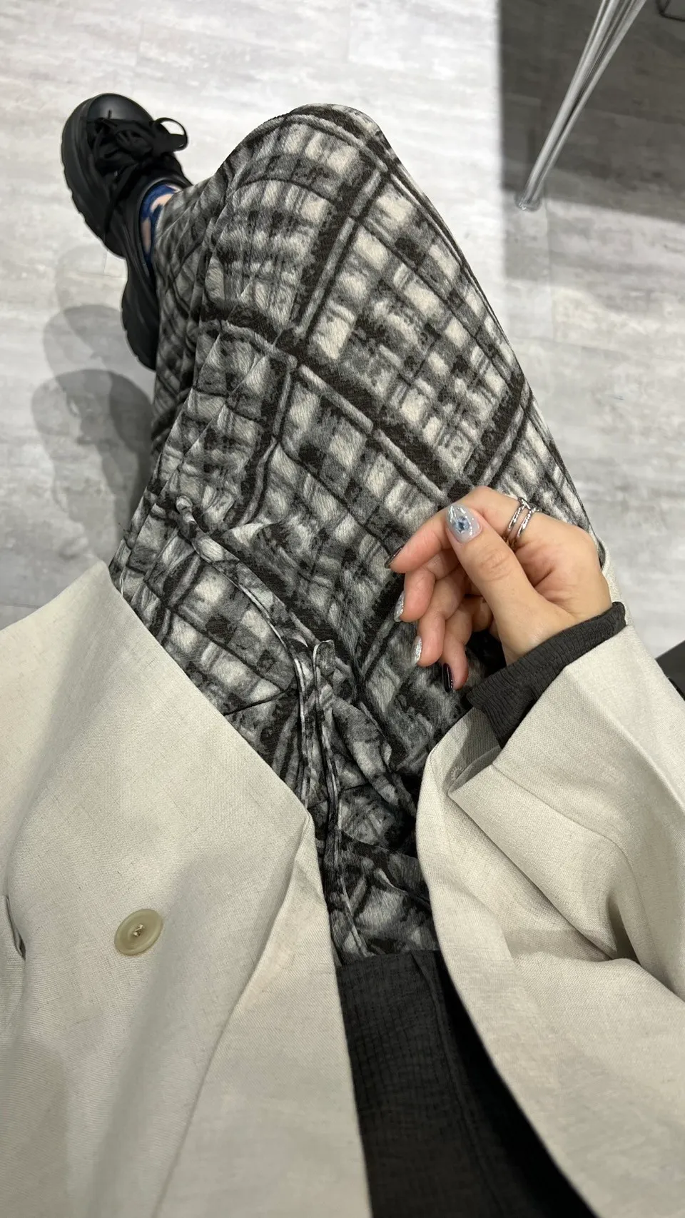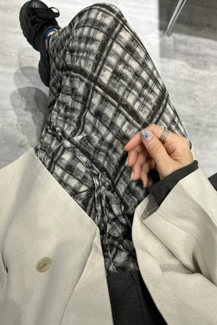 鬆緊格紋裙