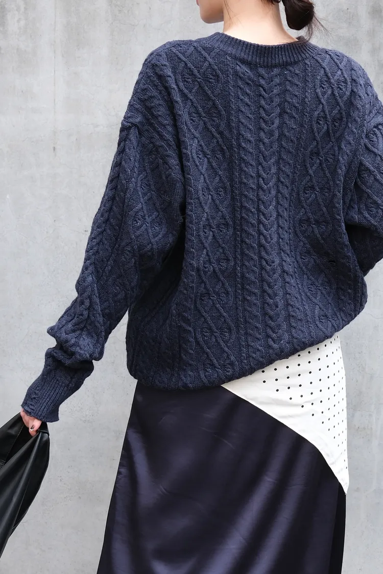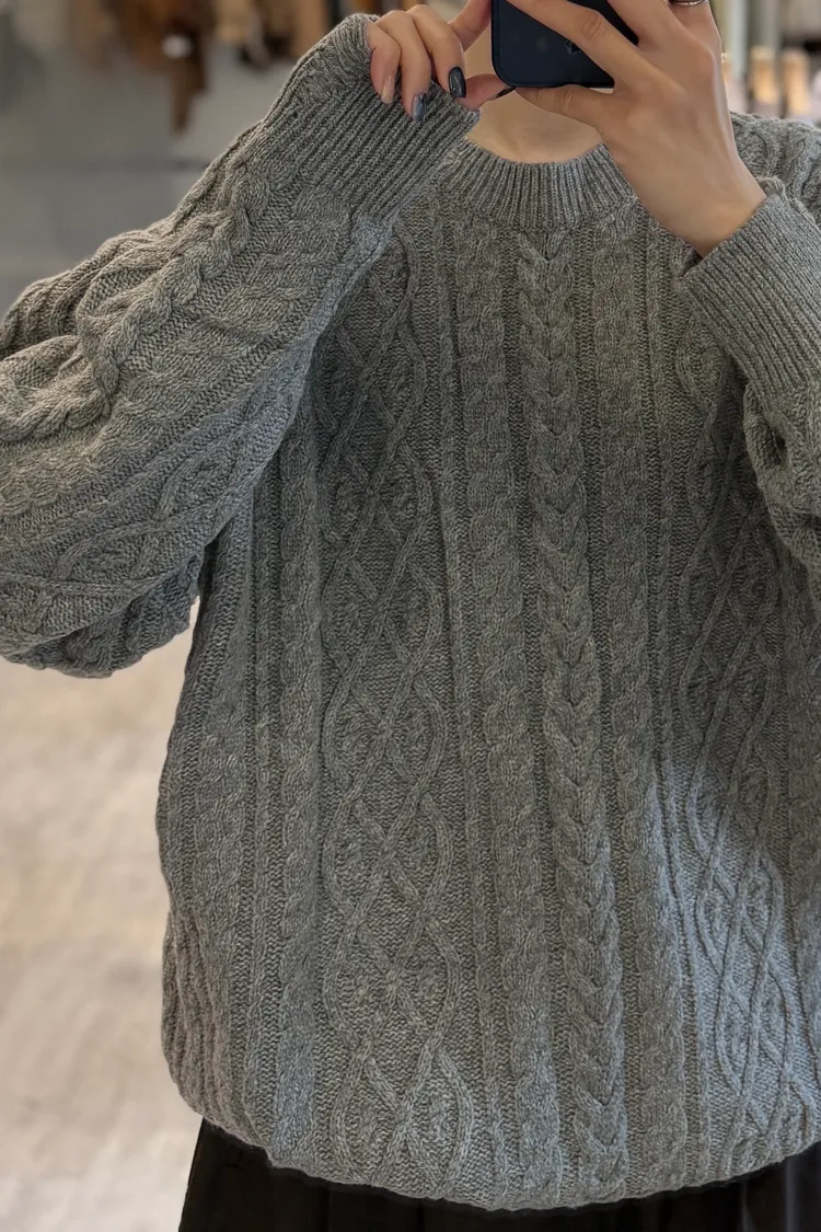 麻花圓領毛衣