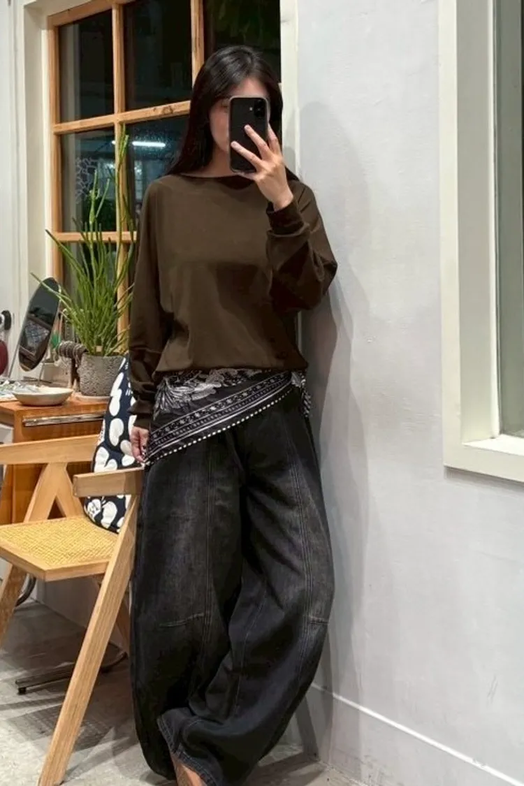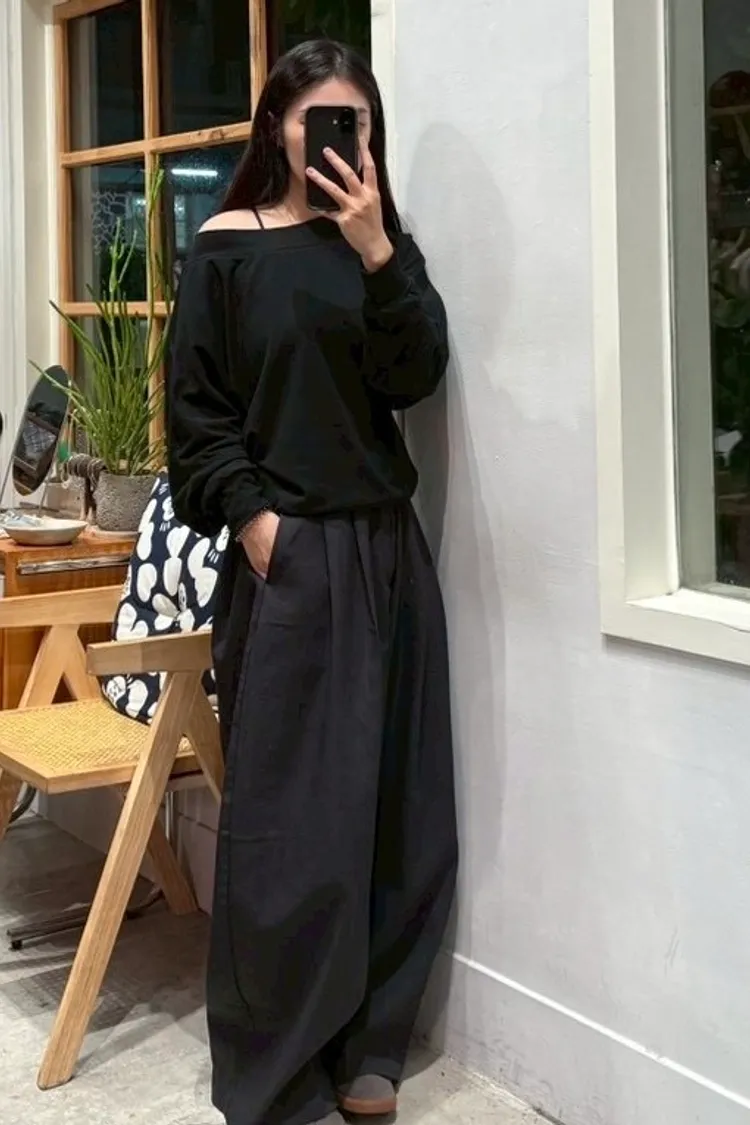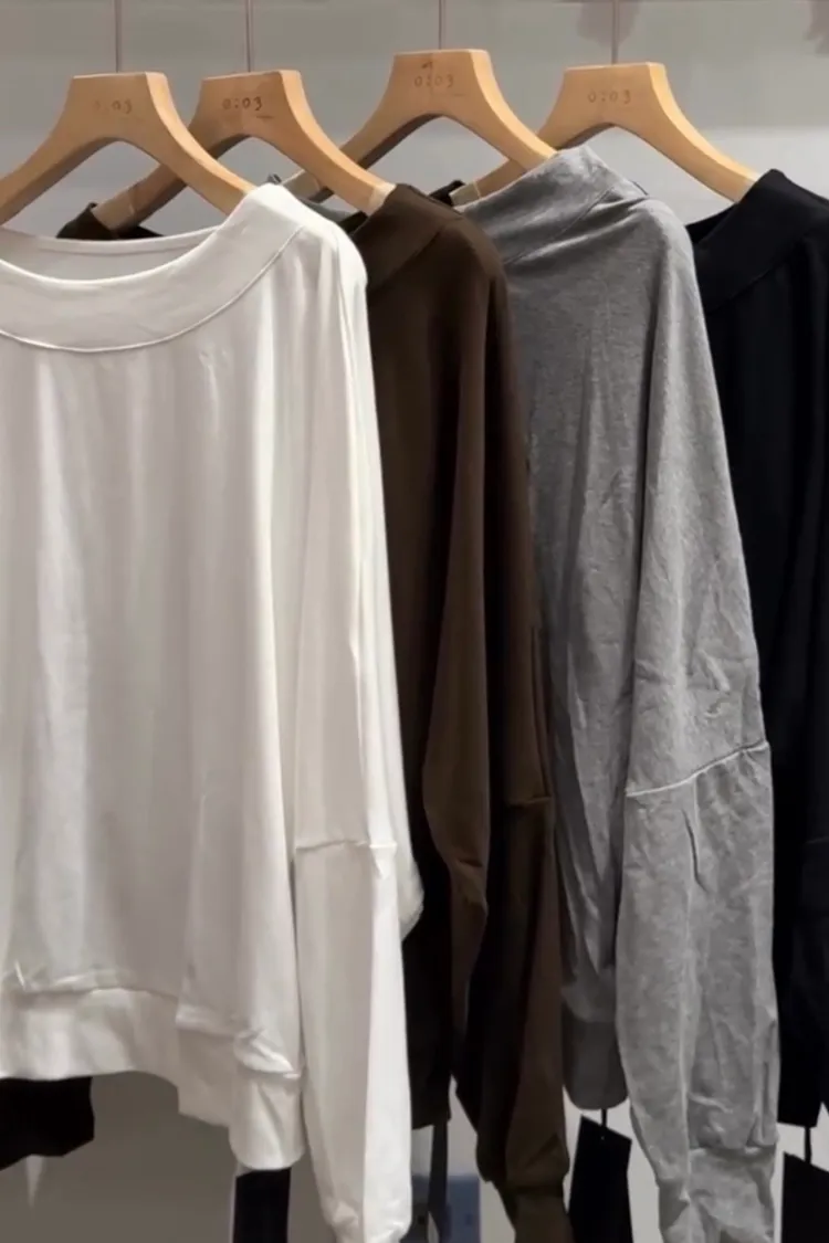 斜肩長袖上衣