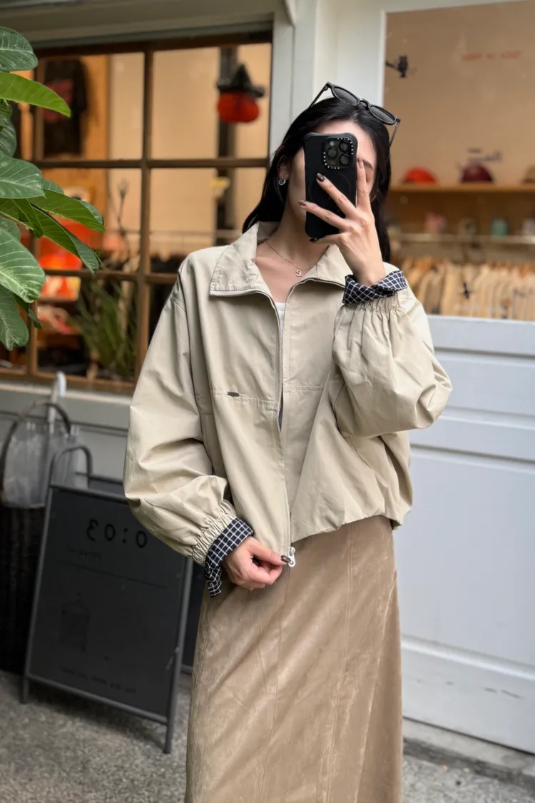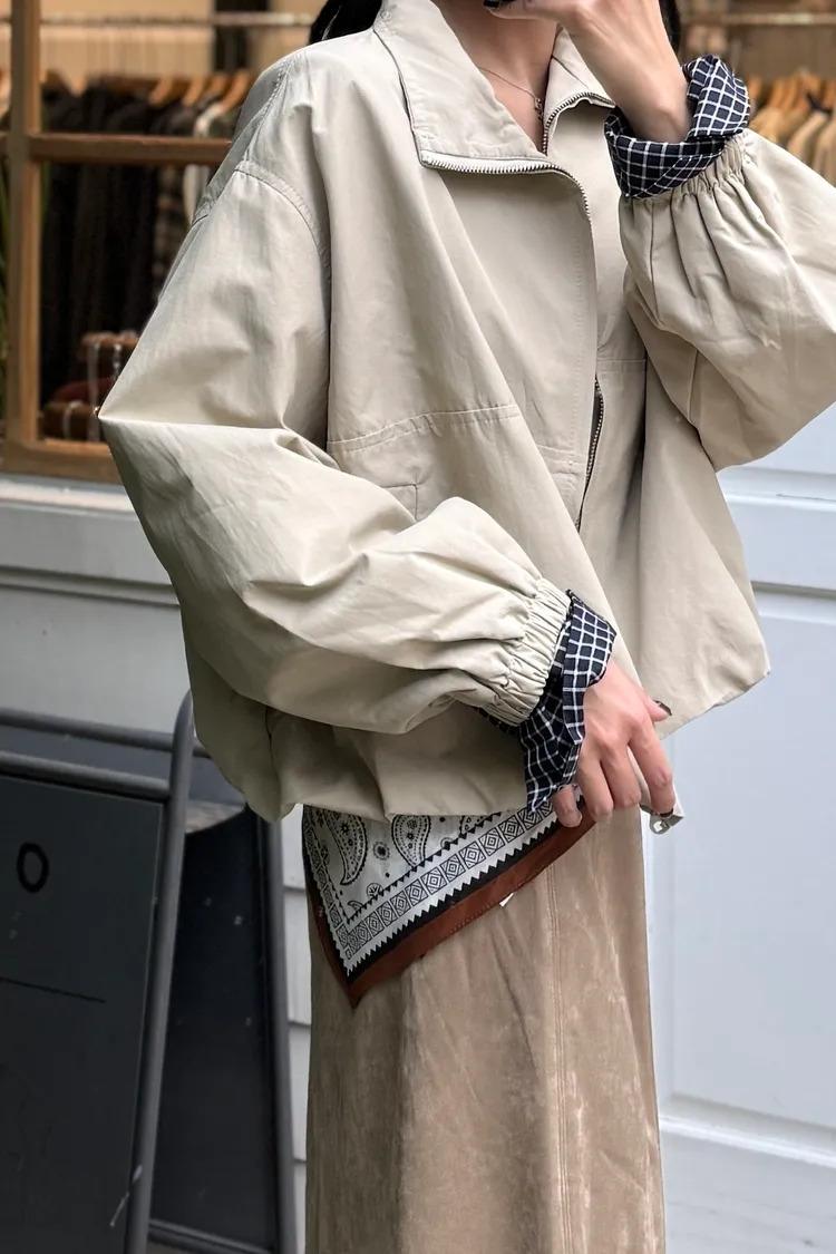 手袖格紋外套