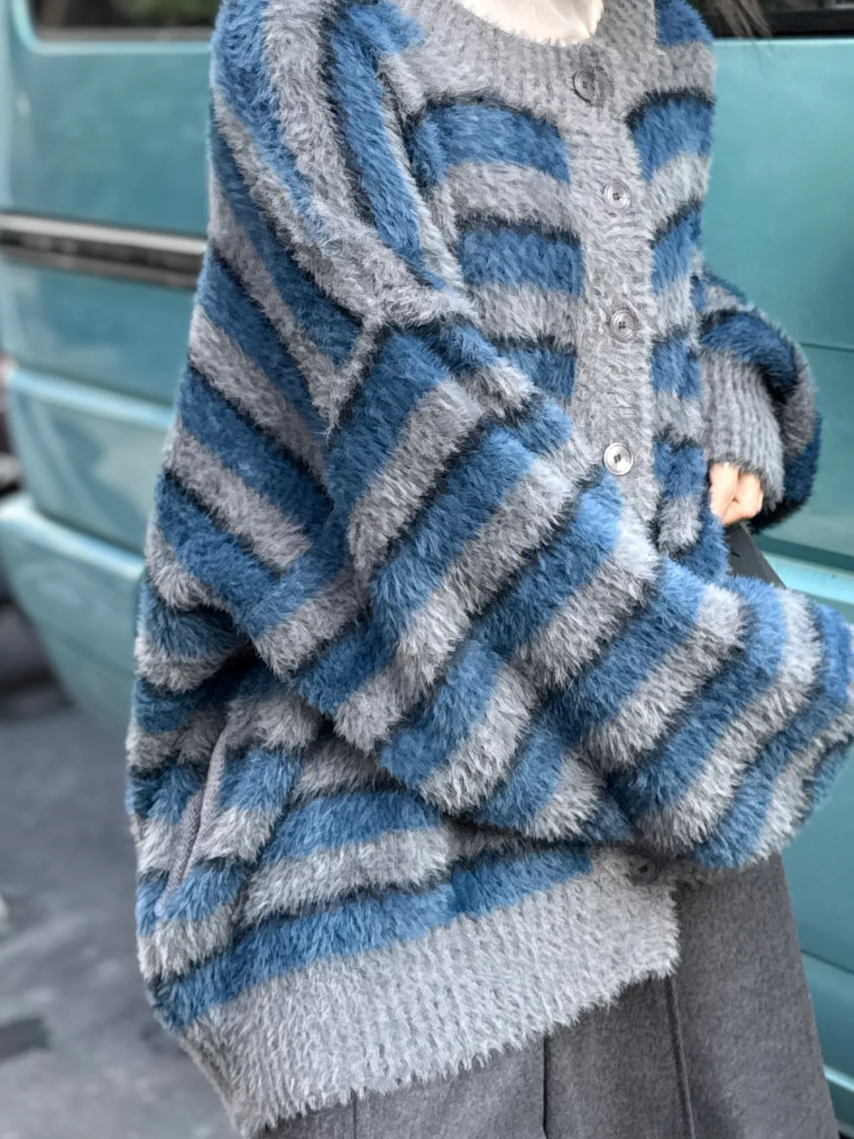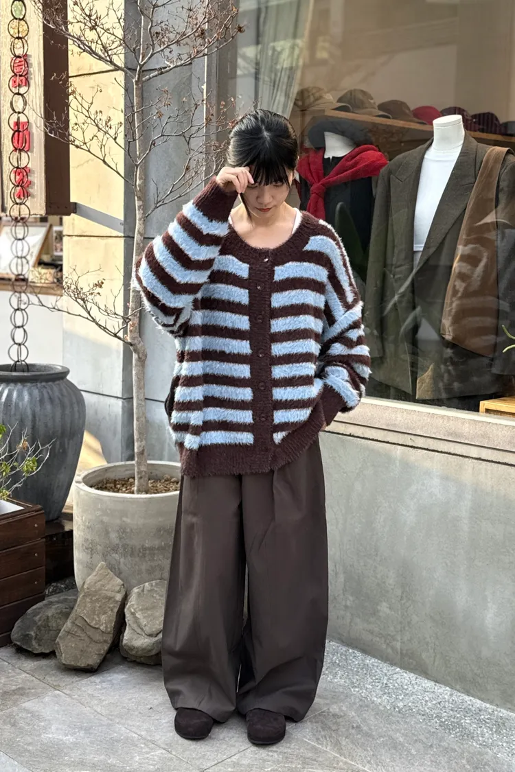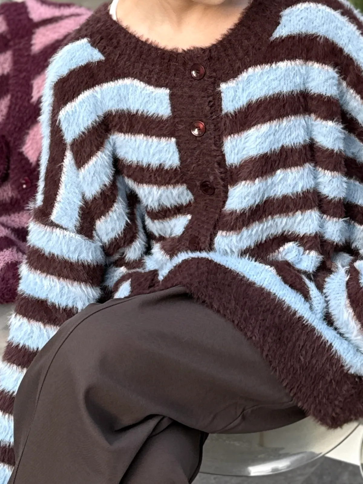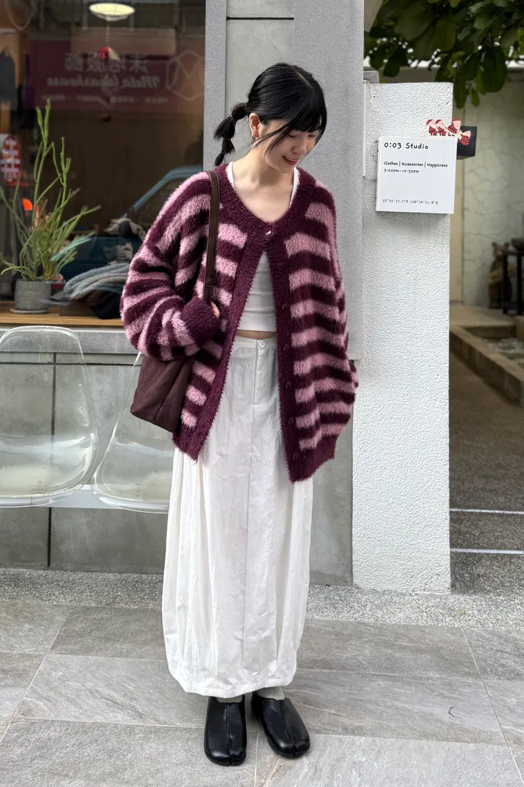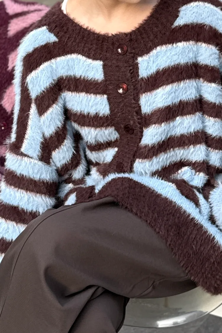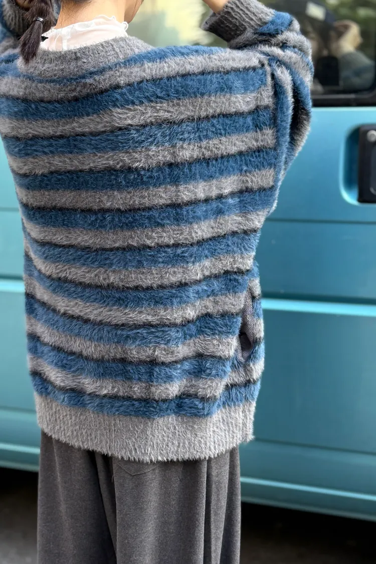 條紋毛毛外套