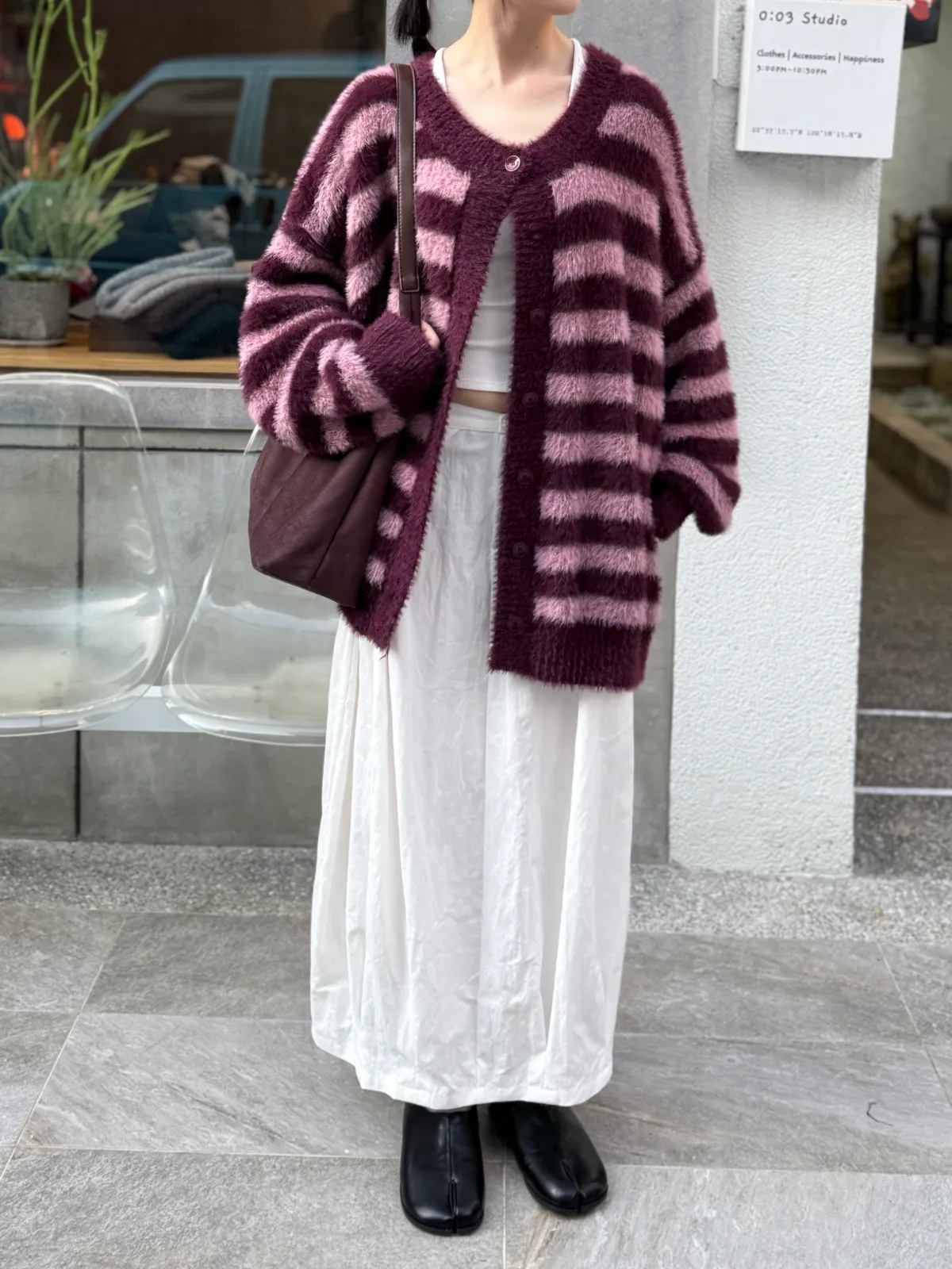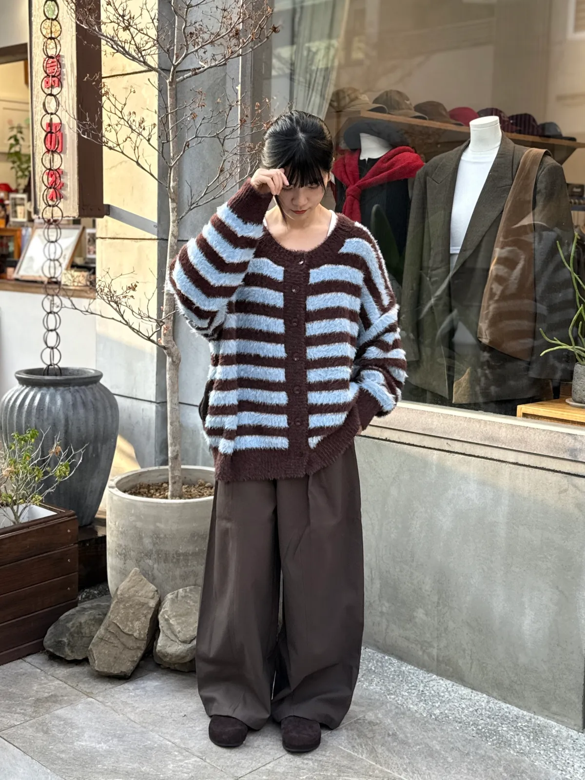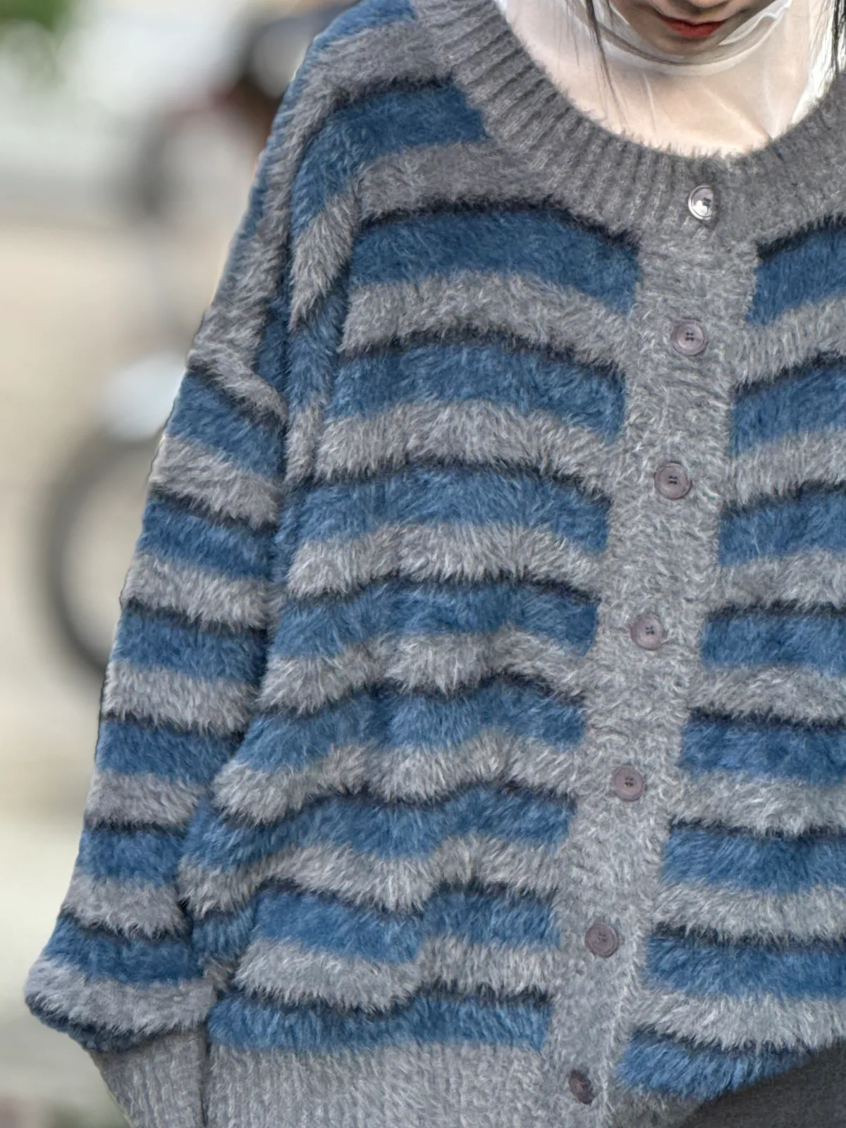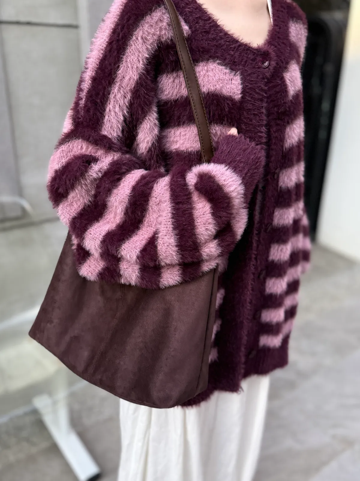 條紋毛毛外套