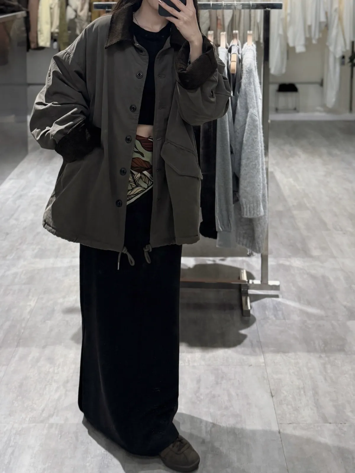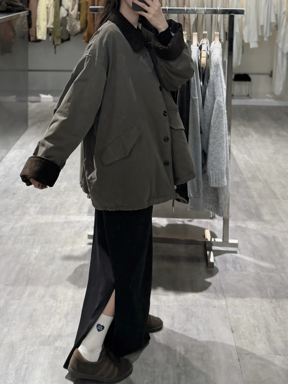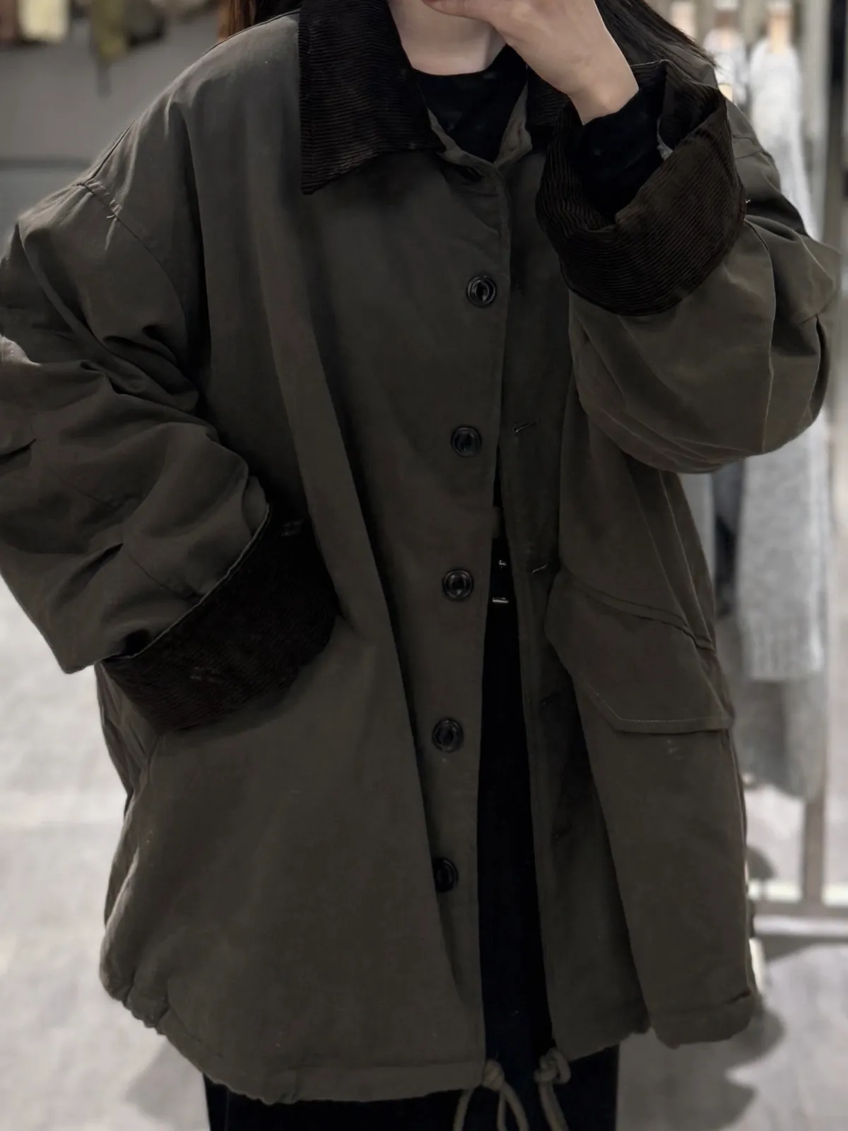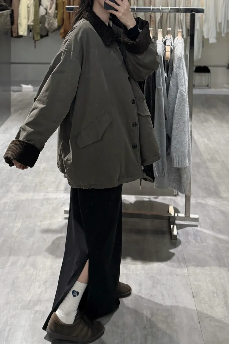 燈芯絨領抽繩外套