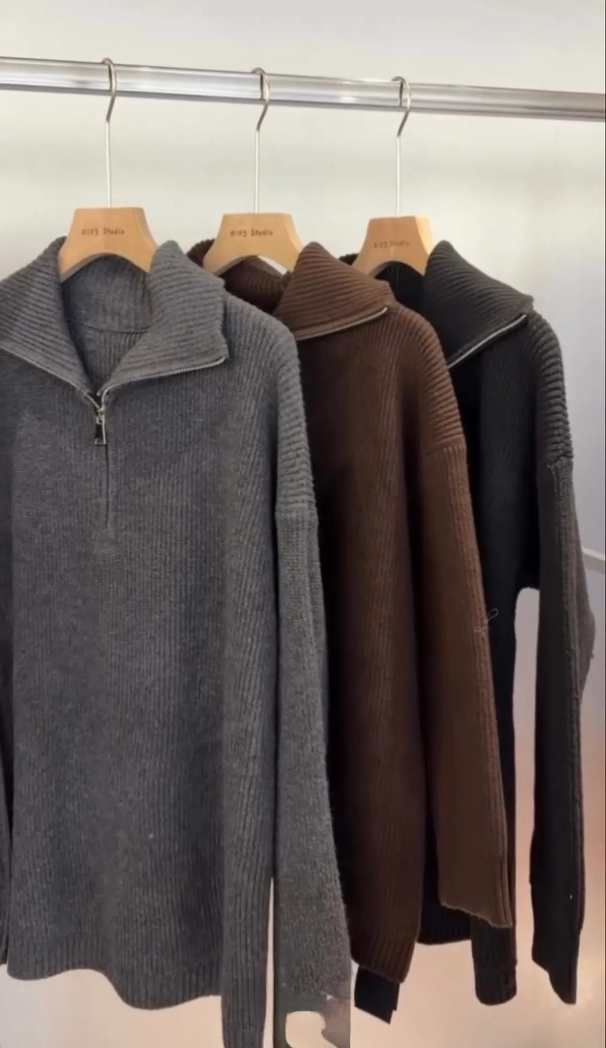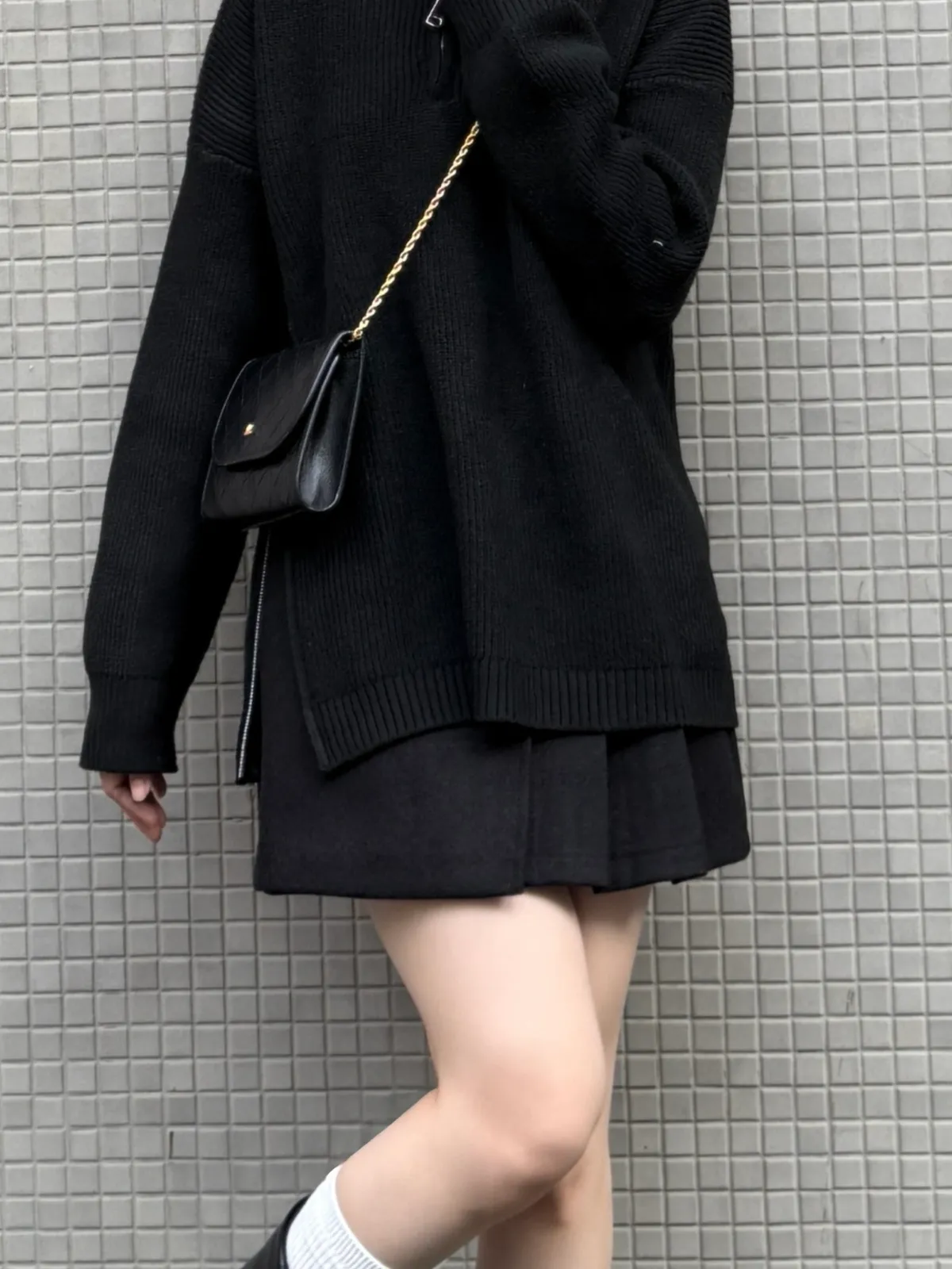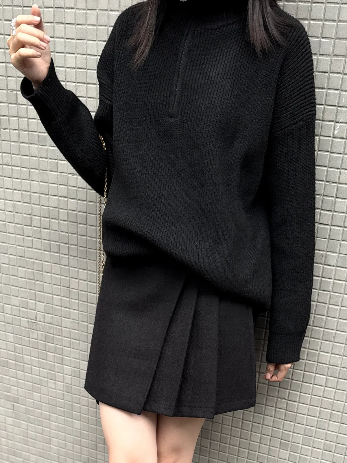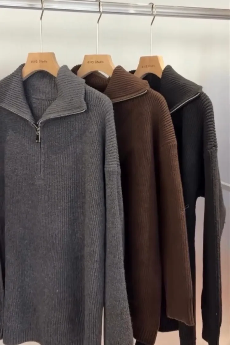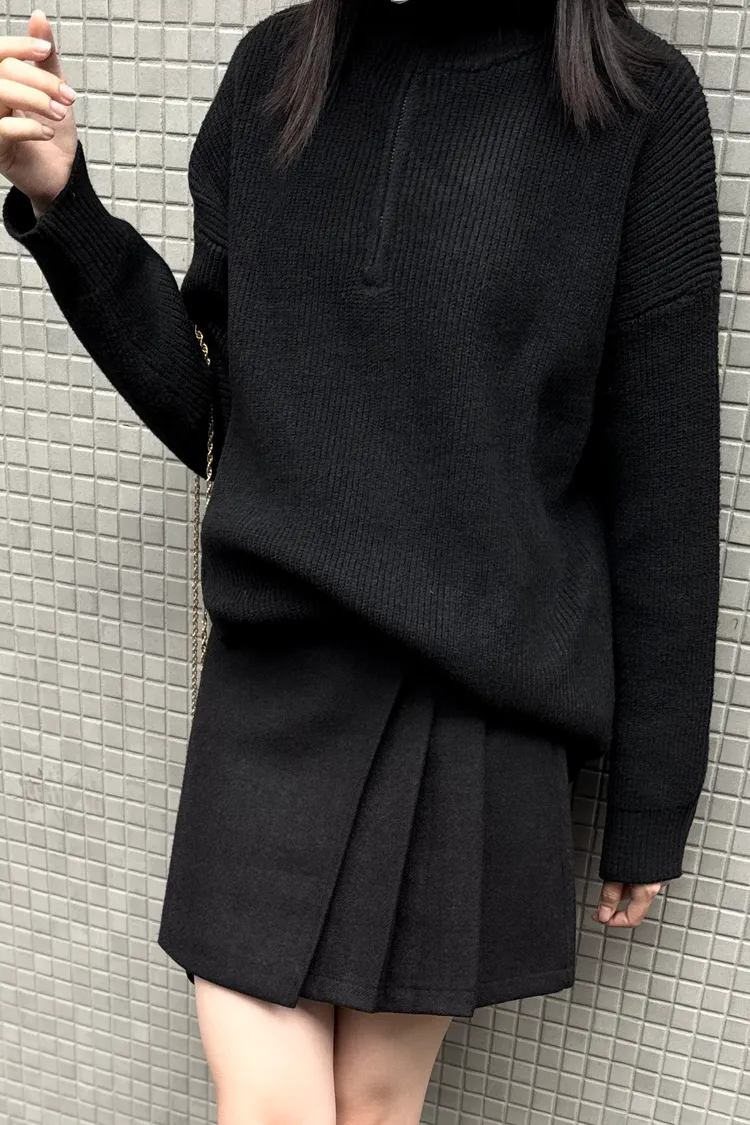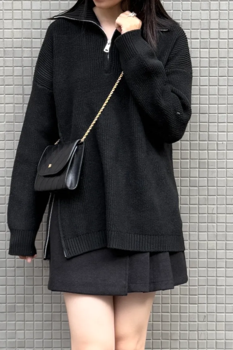 側拉鍊翻領上衣