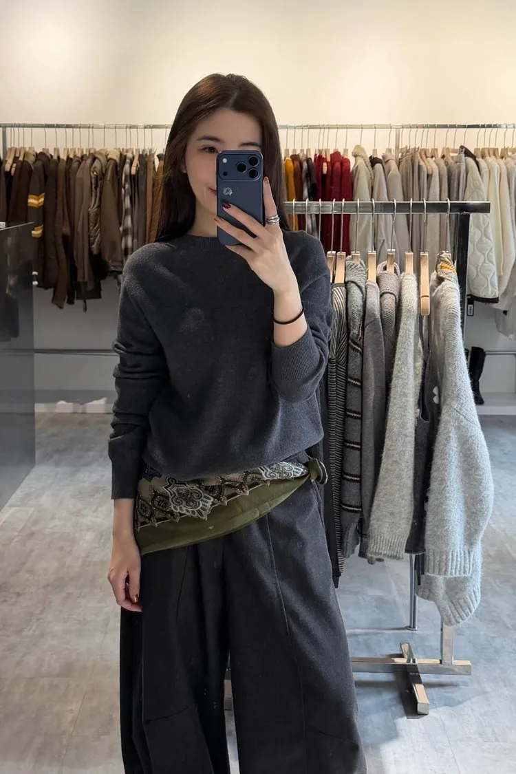 圓領薄針織上衣
