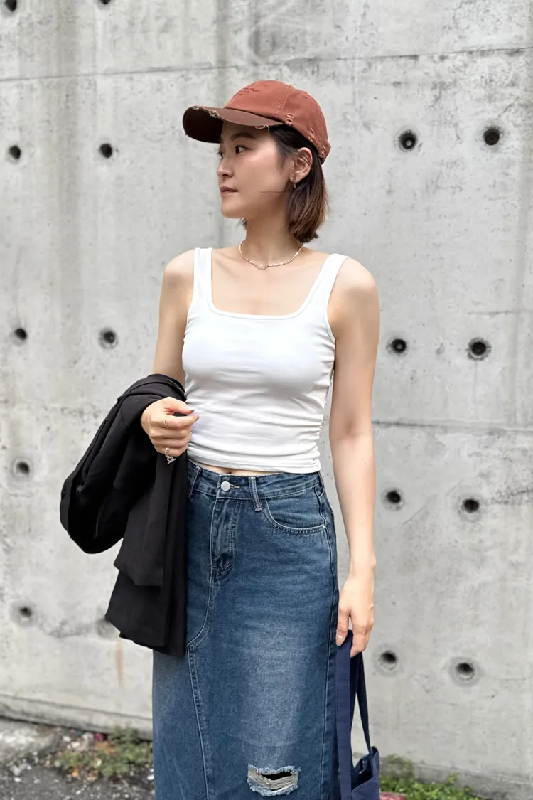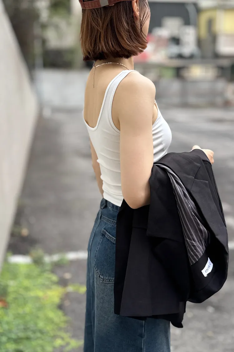 方領側抓皺背心