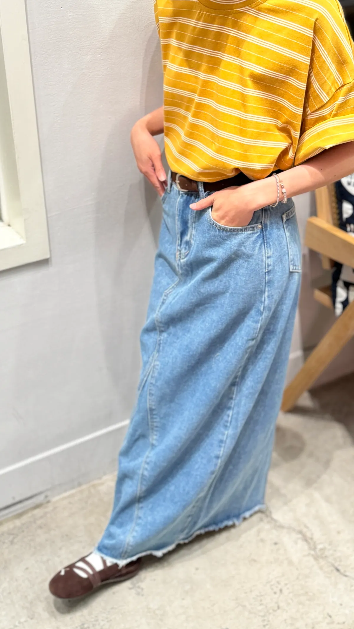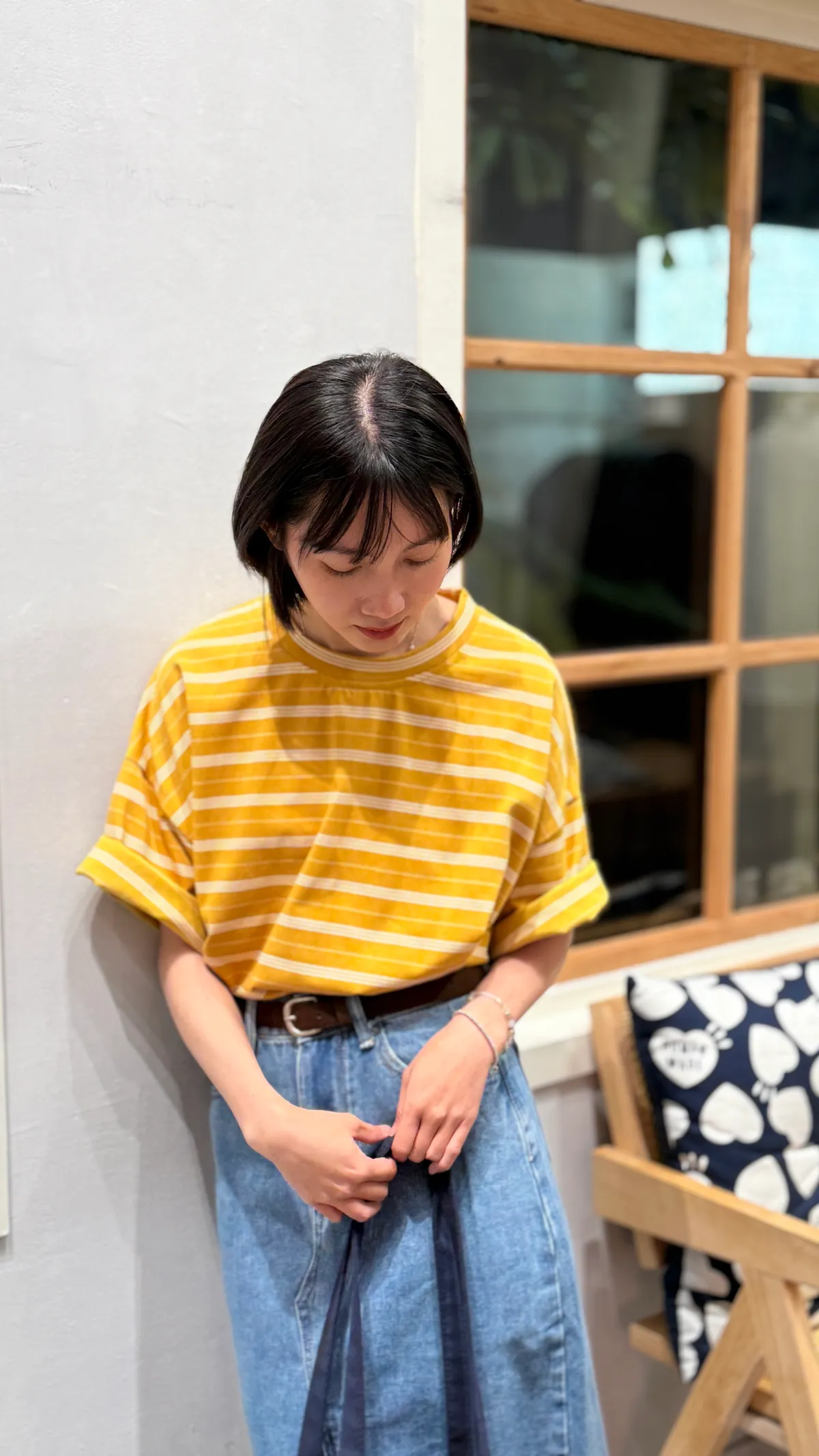 芥末黃條紋大T